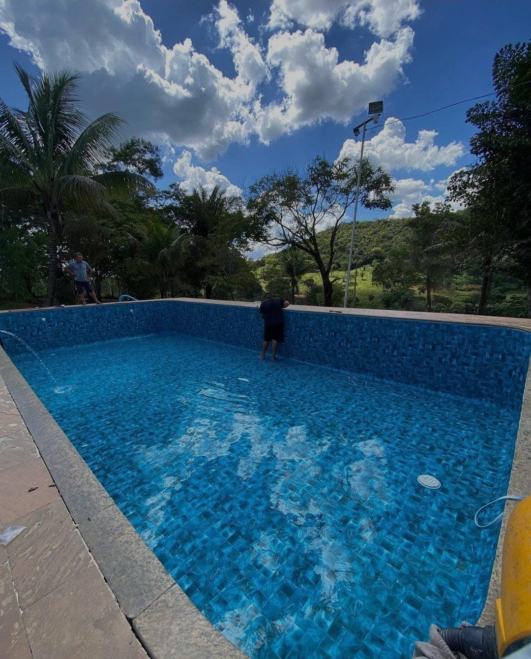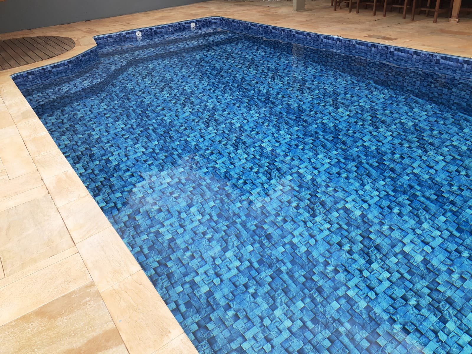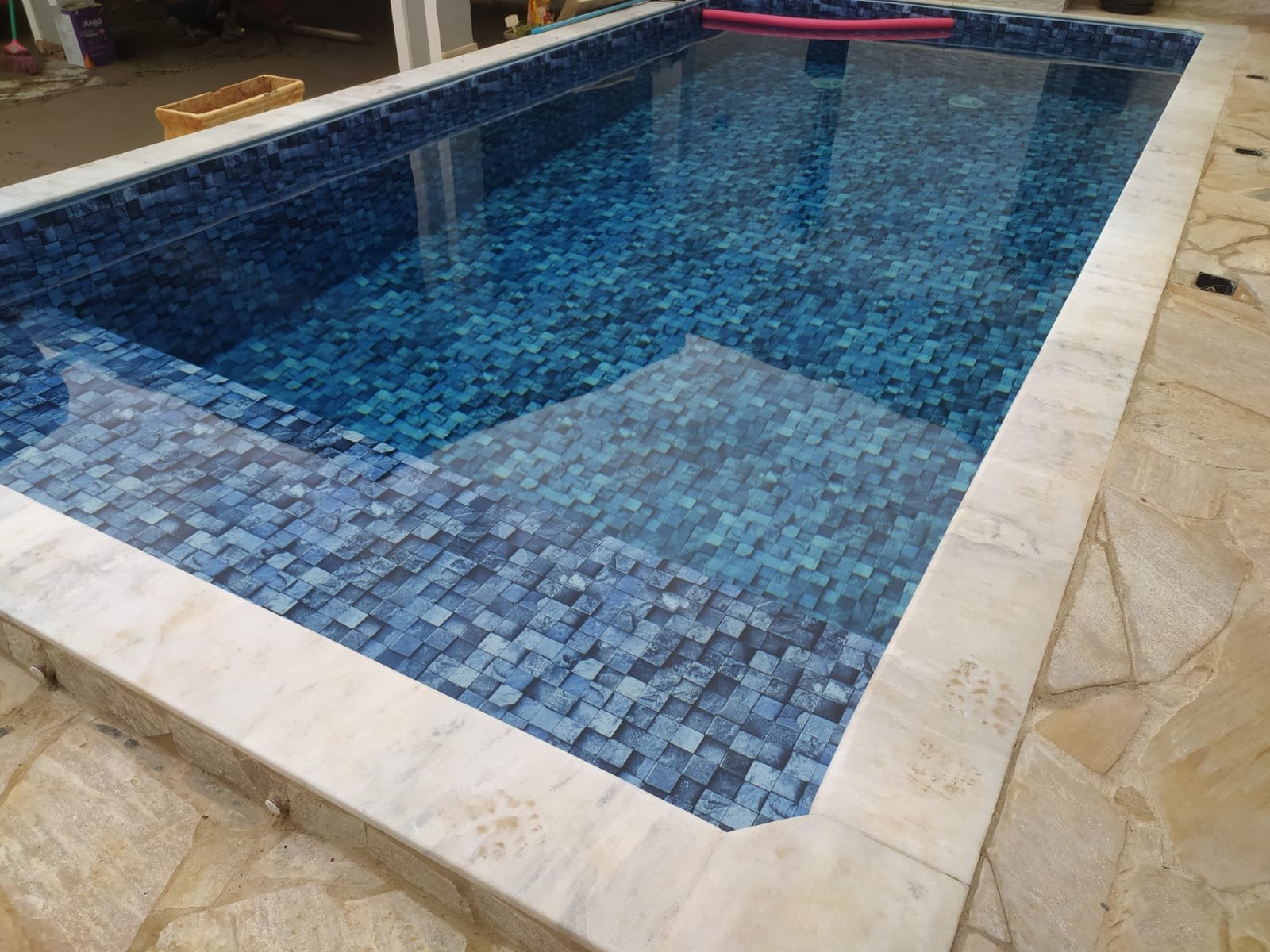 Aplicação profissional de revestimento vinílico com garantia de qualidade e durabilidade para sua piscina.